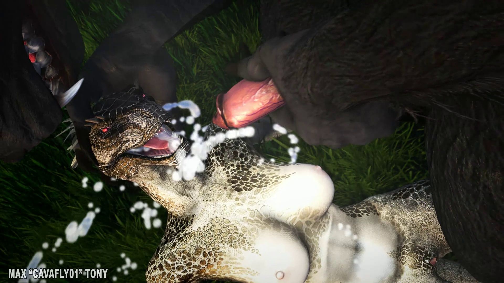 Witness the primal power as a lizard beast faces raw desire in Scene 050.